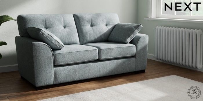 7.2.10 Stamford Buttoned Back Sofa Bed Chunky Weave Mid Blue Large Square Angle - Dark | Made Click here to use our website with more accessibility support, for example screen readers