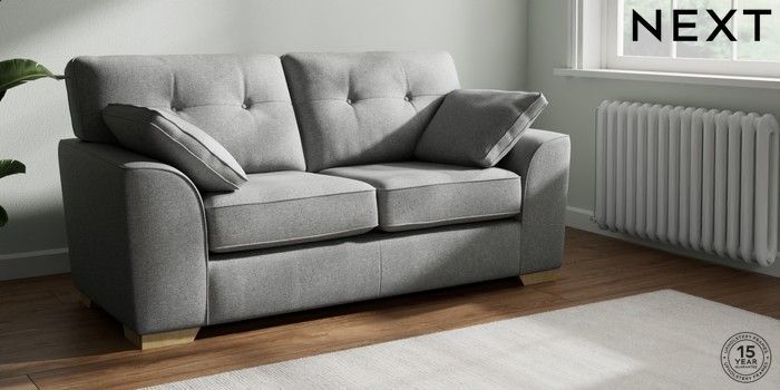 7.2.10 Stamford Buttoned Back Sofa Bed Chunky Weave Mid Grey Large Square Angle - Light | Made Click here to use our website with more accessibility support, for example screen readers