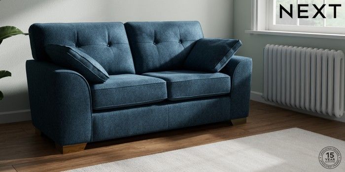 7.2.10 Stamford Buttoned Back Sofa Bed Cotswold Chenille Dark Blue Large Square Angle - Brushed Brass | Made Click here to use our website with more accessibility support, for example screen readers