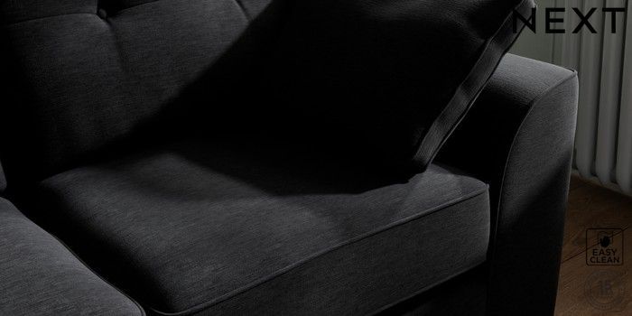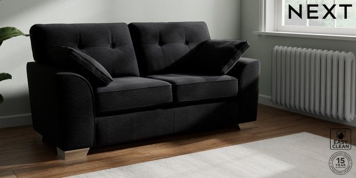 7.2.10 Stamford Buttoned Back Sofa Bed Fine Chenille Easy Clean Black Large Square Angle - Chrome Metal | Made Click here to use our website with more accessibility support, for example screen readers