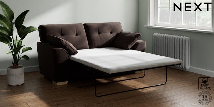 7.2.10 Stamford Buttoned Back Sofa Bed Fine Chenille Easy Clean Chocolate Brown Large Square Angle - Light | Made Click here to use our website with more accessibility support, for example screen readers