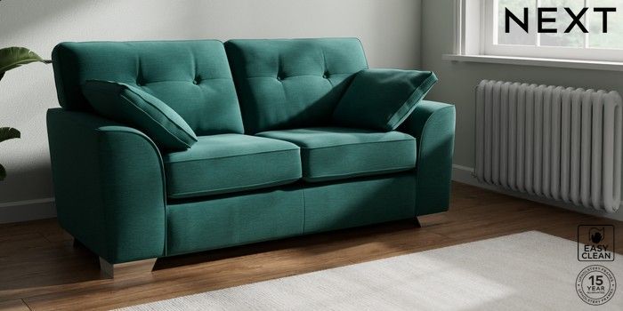 7.2.10 Stamford Buttoned Back Sofa Bed Fine Chenille Easy Clean Dark Juniper Green Large Square Angle - Chrome Metal | Made Click here to use our website with more accessibility support, for example screen readers