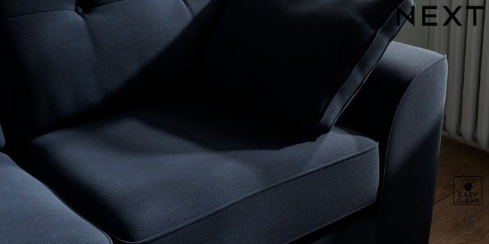 7.2.10 Stamford Buttoned Back Sofa Bed Fine Chenille Easy Clean Dark Navy Blue Large Square Angle - Brushed Brass | Made Click here to use our website with more accessibility support, for example screen readers