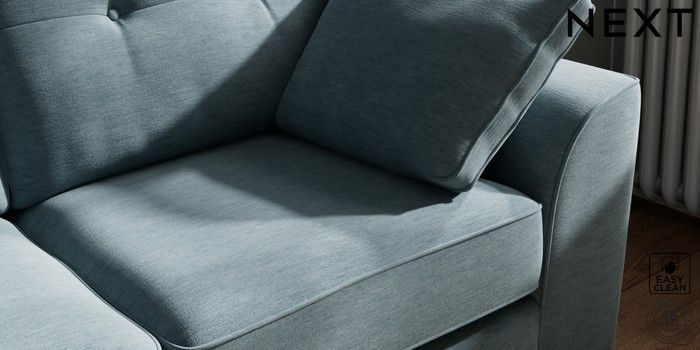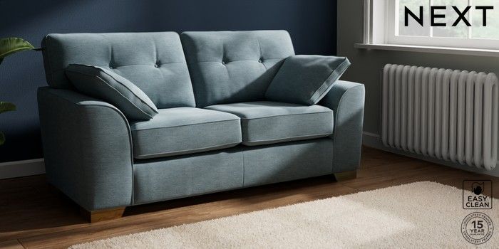 7.2.10 Stamford Buttoned Back Sofa Bed Fine Chenille Easy Clean Mid Blue Large Square Angle - Brushed Brass | Made Click here to use our website with more accessibility support, for example screen readers