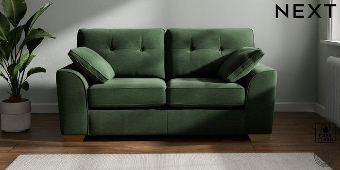 7.2.10 Stamford Buttoned Back Sofa Bed Fine Chenille Easy Clean Mid Khaki Green Large Square Angle - Brushed Brass | Made Click here to use our website with more accessibility support, for example screen readers