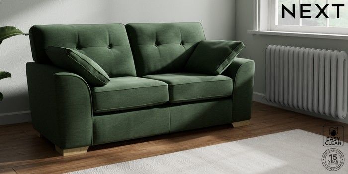 7.2.10 Stamford Buttoned Back Sofa Bed Fine Chenille Easy Clean Mid Khaki Green Large Square Angle - Light | Made Click here to use our website with more accessibility support, for example screen readers
