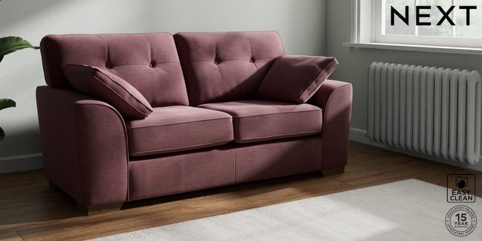7.2.10 Stamford Buttoned Back Sofa Bed Fine Chenille Easy Clean Mid Mulberry Purple Large Square Angle - Mid | Made Click here to use our website with more accessibility support, for example screen readers