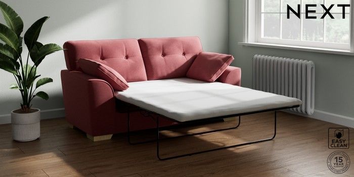 7.2.10 Stamford Buttoned Back Sofa Bed Fine Chenille Easy Clean Mid Pink Large Square Angle - Light | Made Click here to use our website with more accessibility support, for example screen readers