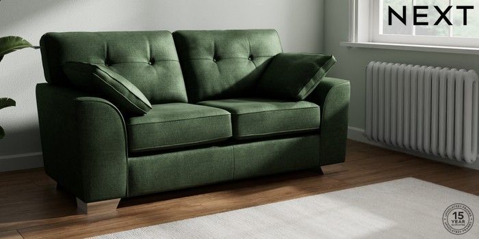 7.2.10 Stamford Buttoned Back Sofa Bed Luxe Chenille Dark Green Large Square Angle - Chrome Metal | Made Click here to use our website with more accessibility support, for example screen readers