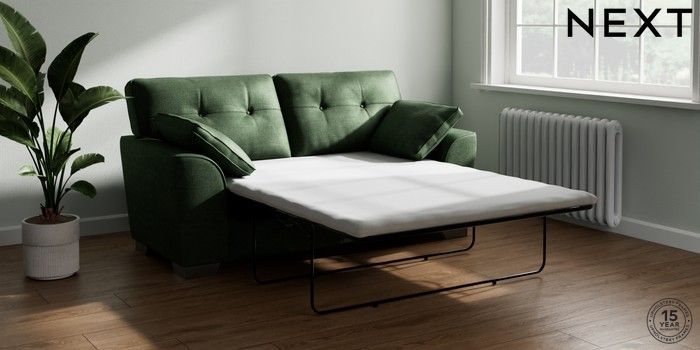 7.2.10 Stamford Buttoned Back Sofa Bed Luxe Chenille Dark Green Large Square Angle - Gunmetal | Made Click here to use our website with more accessibility support, for example screen readers