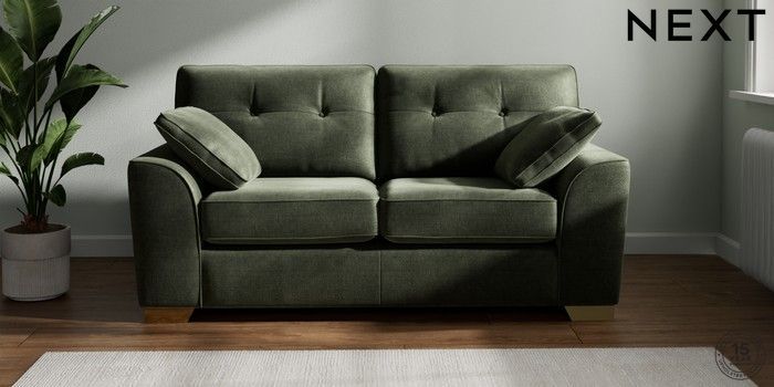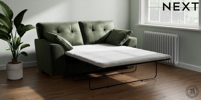 7.2.10 Stamford Buttoned Back Sofa Bed Luxe Chenille Mid Green Large Square Angle - Brushed Brass | Made Click here to use our website with more accessibility support, for example screen readers