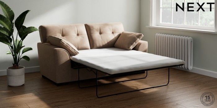 7.2.10 Stamford Buttoned Back Sofa Bed Luxe Chenille Mid Natural Large Square Angle - Dark | Made Click here to use our website with more accessibility support, for example screen readers