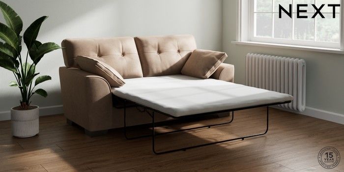 7.2.10 Stamford Buttoned Back Sofa Bed Luxe Chenille Mid Natural Large Square Angle - Gunmetal | Made Click here to use our website with more accessibility support, for example screen readers