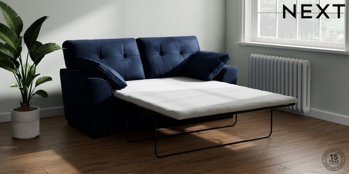 7.2.10 Stamford Buttoned Back Sofa Bed Luxe Chenille Navy Blue Large Square Angle - Dark | Made Click here to use our website with more accessibility support, for example screen readers
