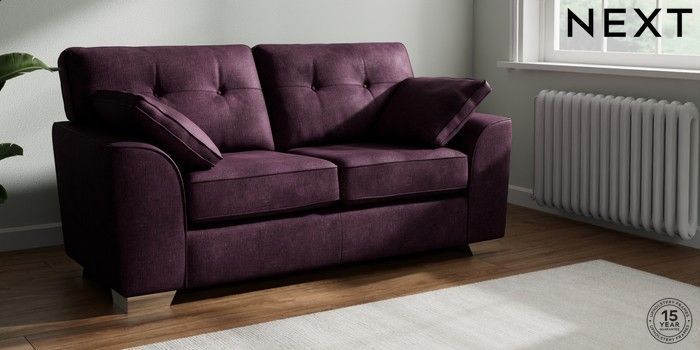 7.2.10 Stamford Buttoned Back Sofa Bed Plush Chenille Dark Plum Purple Large Square Angle - Chrome Metal | Made Click here to use our website with more accessibility support, for example screen readers