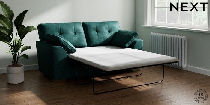 7.2.10 Stamford Buttoned Back Sofa Bed Plush Chenille Dark Teal Green Large Square Angle - Brushed Brass | Made Click here to use our website with more accessibility support, for example screen readers