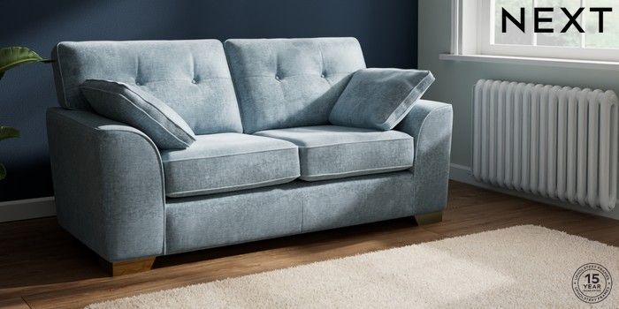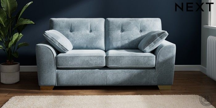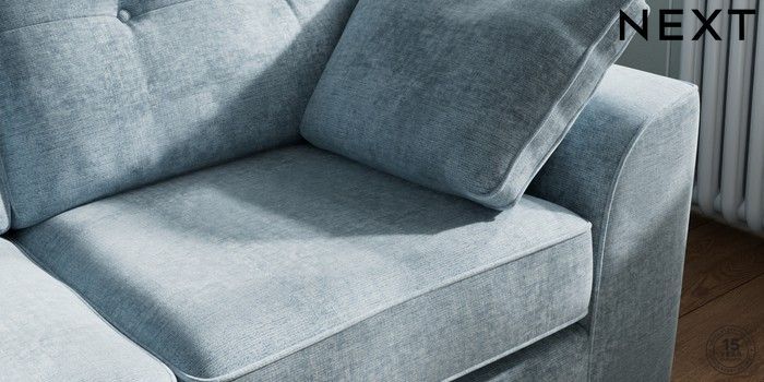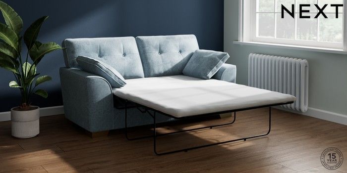 7.2.10 Stamford Buttoned Back Sofa Bed Plush Chenille Light Blue Large Square Angle - Brushed Brass | Made Click here to use our website with more accessibility support, for example screen readers
