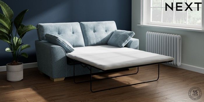 7.2.10 Stamford Buttoned Back Sofa Bed Plush Chenille Light Blue Large Square Angle - Light | Made Click here to use our website with more accessibility support, for example screen readers
