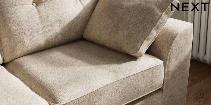 7.2.10 Stamford Buttoned Back Sofa Bed Plush Chenille Light Natural Large Square Angle - Chrome Metal | Made Click here to use our website with more accessibility support, for example screen readers