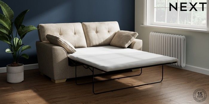 7.2.10 Stamford Buttoned Back Sofa Bed Plush Chenille Light Natural Large Square Angle - Light | Made Click here to use our website with more accessibility support, for example screen readers