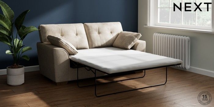 7.2.10 Stamford Buttoned Back Sofa Bed Plush Chenille Light Natural Large Square Angle - Mid | Made Click here to use our website with more accessibility support, for example screen readers