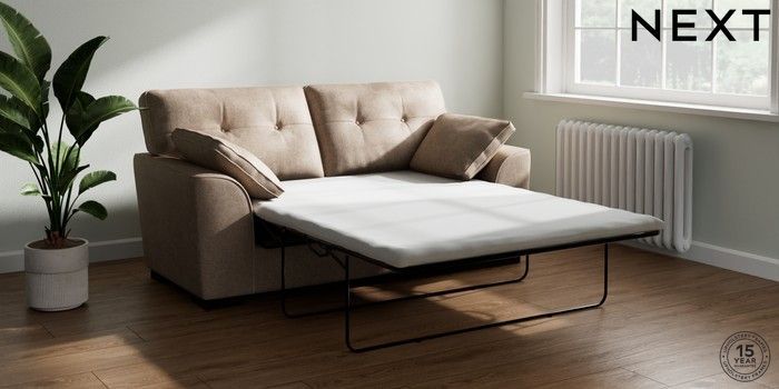 7.2.10 Stamford Buttoned Back Sofa Bed Plush Chenille Mid Natural Large Square Angle - Dark | Made Click here to use our website with more accessibility support, for example screen readers