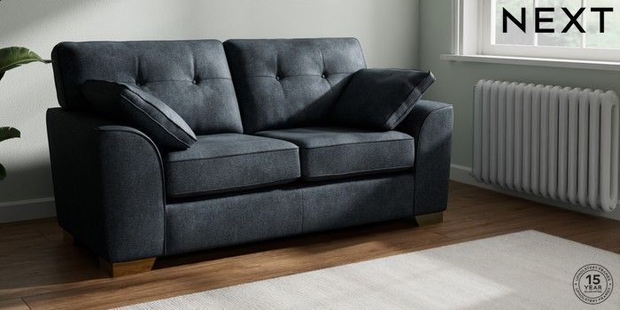 7.2.10 Stamford Buttoned Back Sofa Bed Plush Chenille Slate Blue Large Square Angle - Brushed Brass | Made Click here to use our website with more accessibility support, for example screen readers