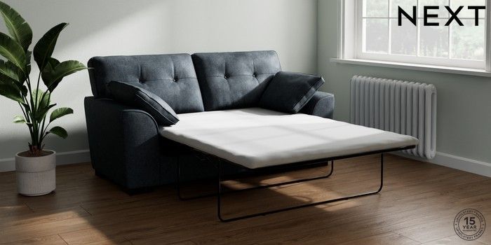 7.2.10 Stamford Buttoned Back Sofa Bed Plush Chenille Slate Blue Large Square Angle - Dark | Made Click here to use our website with more accessibility support, for example screen readers