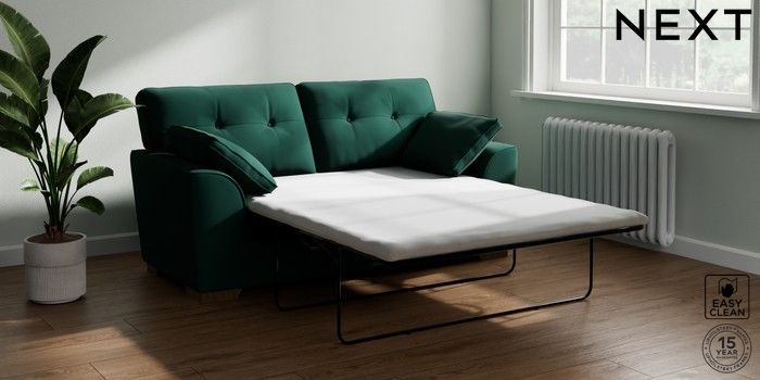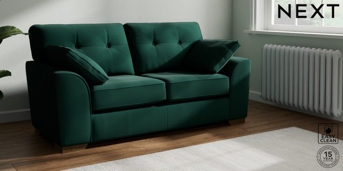 7.2.10 Stamford Buttoned Back Sofa Bed Plush Velvet Easy Clean Bottle Green Large Square Angle - Mid | Made Click here to use our website with more accessibility support, for example screen readers