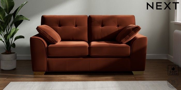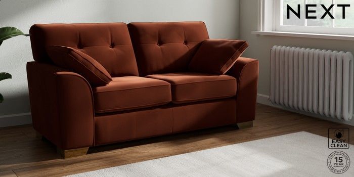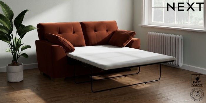 7.2.10 Stamford Buttoned Back Sofa Bed Plush Velvet Easy Clean Ginger Orange Large Square Angle - Brushed Brass | Made Click here to use our website with more accessibility support, for example screen readers