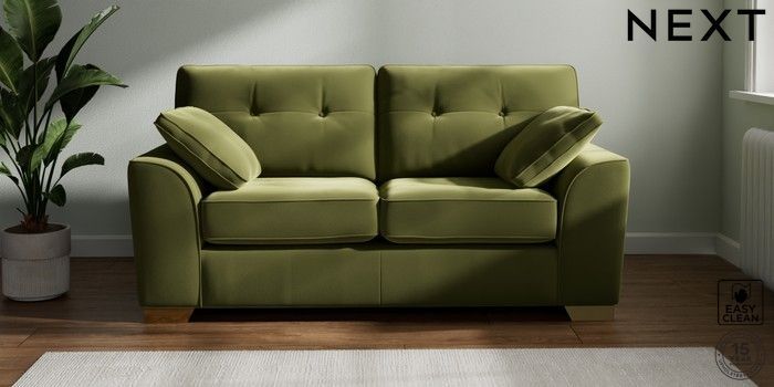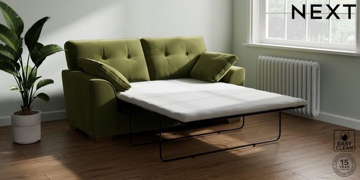 7.2.10 Stamford Buttoned Back Sofa Bed Plush Velvet Easy Clean Mid Olive Green Large Square Angle - Brushed Brass | Made Click here to use our website with more accessibility support, for example screen readers