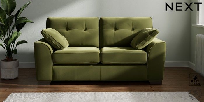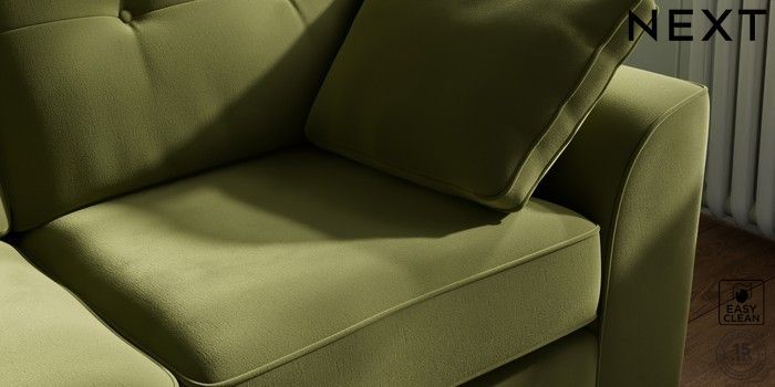7.2.10 Stamford Buttoned Back Sofa Bed Plush Velvet Easy Clean Mid Olive Green Large Square Angle - Gunmetal | Made Click here to use our website with more accessibility support, for example screen readers