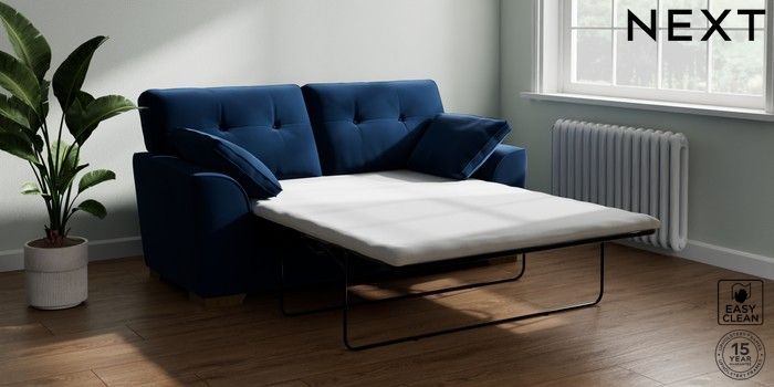 7.2.10 Stamford Buttoned Back Sofa Bed Plush Velvet Easy Clean Navy Blue Large Square Angle - Mid | Made Click here to use our website with more accessibility support, for example screen readers