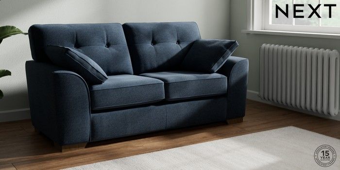 7.2.10 Stamford Buttoned Back Sofa Bed Ripple Chenille Dark Blue Large Square Angle - Mid | Made Click here to use our website with more accessibility support, for example screen readers