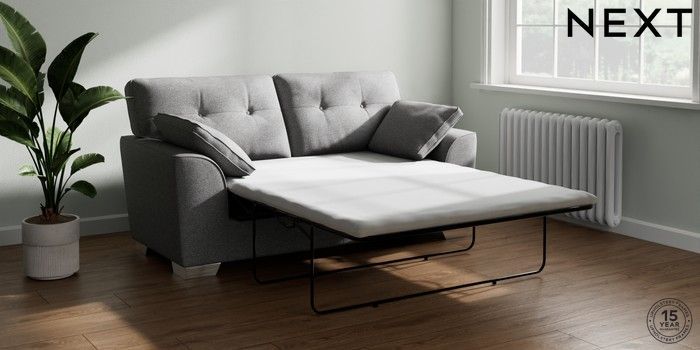 7.2.10 Stamford Buttoned Back Sofa Bed Studio Chenille Mid Grey Large Square Angle - Chrome Metal | Made Click here to use our website with more accessibility support, for example screen readers