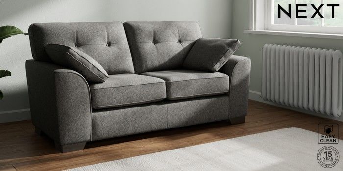 7.2.10 Stamford Buttoned Back Sofa Bed Tweedy Blend Easy Clean Dark Grey Large Square Angle - Gunmetal | Made Click here to use our website with more accessibility support, for example screen readers