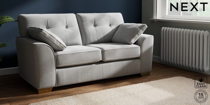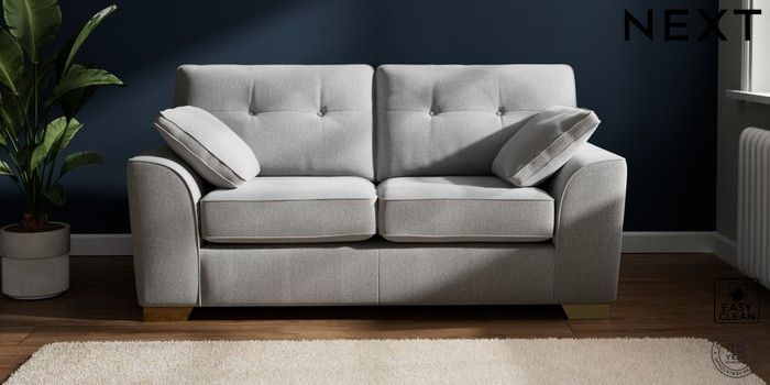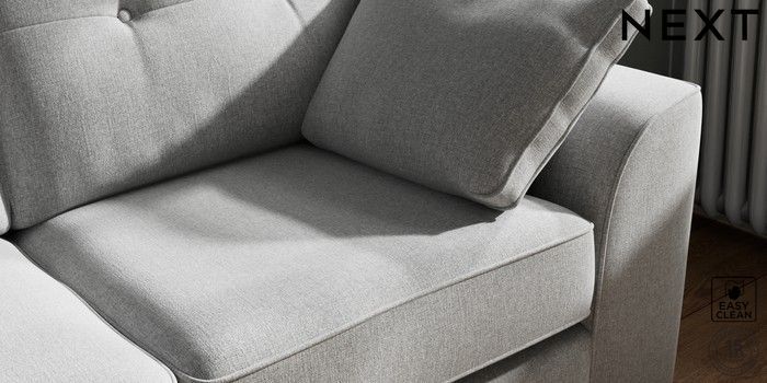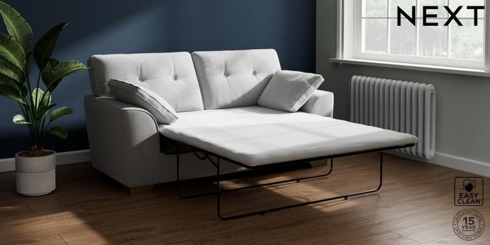 7.2.10 Stamford Buttoned Back Sofa Bed Tweedy Blend Easy Clean Light Silver Grey Large Square Angle - Brushed Brass | Made Click here to use our website with more accessibility support, for example screen readers