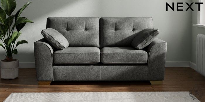 7.2.10 Stamford Buttoned Back Sofa Bed Tweedy Chenille Dark Grey Large Square Angle - Brushed Brass | Made Click here to use our website with more accessibility support, for example screen readers