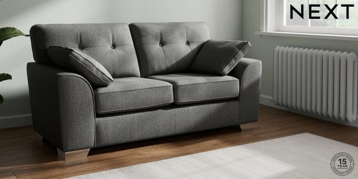 7.2.10 Stamford Buttoned Back Sofa Bed Tweedy Chenille Dark Grey Large Square Angle - Chrome Metal | Made Click here to use our website with more accessibility support, for example screen readers