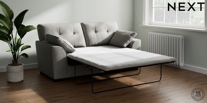 7.2.10 Stamford Buttoned Back Sofa Bed Tweedy Chenille Mid Grey Large Square Angle - Dark | Made Click here to use our website with more accessibility support, for example screen readers
