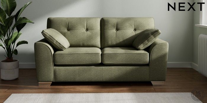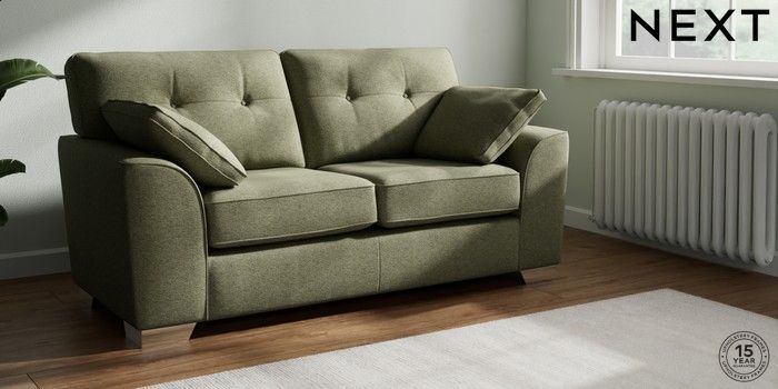 7.2.10 Stamford Buttoned Back Sofa Bed Tweedy Chenille Mid Moss Green Large Square Angle - Chrome Metal | Made Click here to use our website with more accessibility support, for example screen readers