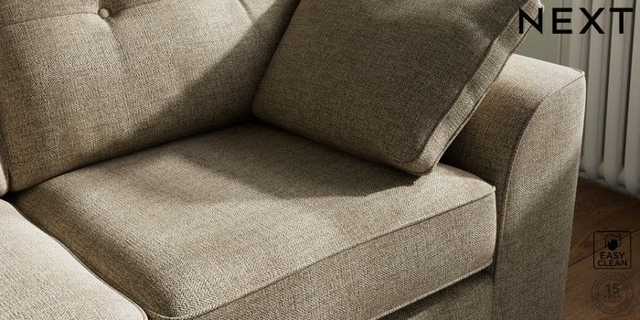 7.2.10 Stamford Buttoned Back Sofa Bed Woven Chenille Easy Clean Mid Natural Large Square Angle - Brushed Brass | Made Click here to use our website with more accessibility support, for example screen readers