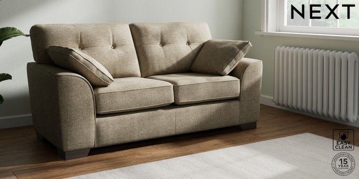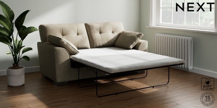 7.2.10 Stamford Buttoned Back Sofa Bed Woven Chenille Easy Clean Mid Natural Large Square Angle - Gunmetal | Made Click here to use our website with more accessibility support, for example screen readers