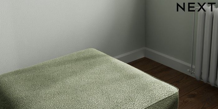 7.2.10 Stamford Buttoned Back Storage Footstool Boucle Chenille Dark Moss Green Square Angle - Gunmetal | Made Click here to use our website with more accessibility support, for example screen readers