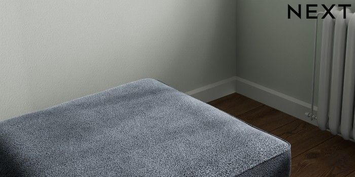 7.2.10 Stamford Buttoned Back Storage Footstool Boucle Chenille Dark Slate Blue Square Angle - Chrome Metal | Made Click here to use our website with more accessibility support, for example screen readers