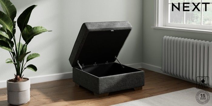 7.2.10 Stamford Buttoned Back Storage Footstool Boucle Weave Easy Clean Charcoal Grey Square Angle - Mid | Made Click here to use our website with more accessibility support, for example screen readers