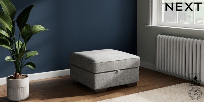 7.2.10 Stamford Buttoned Back Storage Footstool Chunky Boucle Easy Clean Light Grey Square Angle - Gunmetal | Made Click here to use our website with more accessibility support, for example screen readers