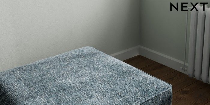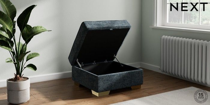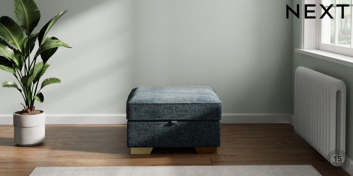 7.2.10 Stamford Buttoned Back Storage Footstool Chunky Chenille Dark Navy Blue Square Angle - Brushed Brass | Made Click here to use our website with more accessibility support, for example screen readers