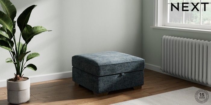 7.2.10 Stamford Buttoned Back Storage Footstool Chunky Chenille Dark Navy Blue Square Angle - Mid | Made Click here to use our website with more accessibility support, for example screen readers