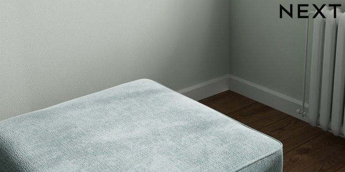 7.2.10 Stamford Buttoned Back Storage Footstool Chunky Chenille Light Teal Green Square Angle - Light | Made Click here to use our website with more accessibility support, for example screen readers